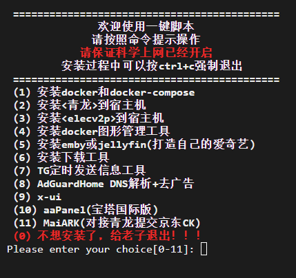 5、在宝塔远程工具里安装青龙输入以下指令。(也可以用鼠标复制粘贴)