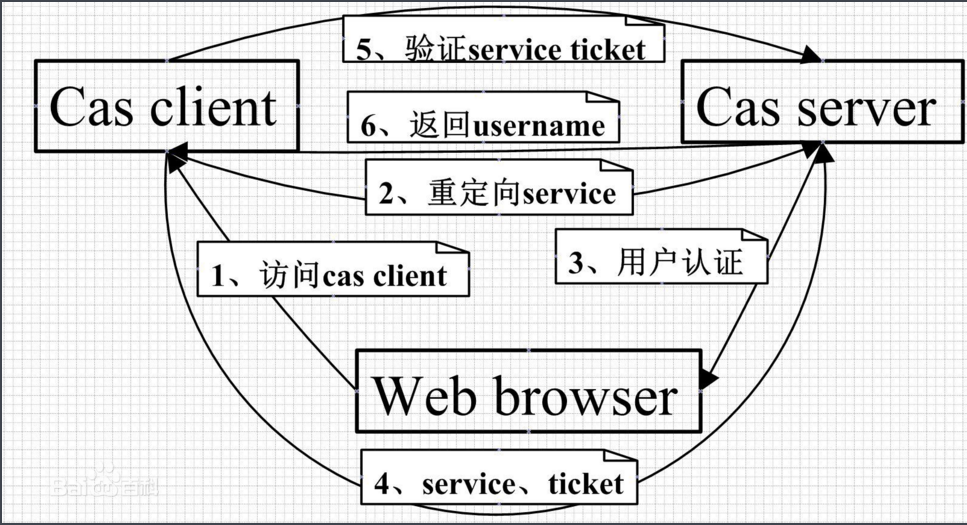 CAS Client与受保护的客户端应用部署在一起,以Filter方式保护受保护的资源,对于访问受保护的资源的每个Web请求,CAS Client会分析该请求的Http请求中是否包含Server ticket,如果没有,则说名当前用户尚未登录,于是将请求重定向到指定好的CAS Server登录地址,并传递Service(也就是要访问的目的资源地址),以便登录成功后转回该地址.用户在第三步中输入认证信息,如果登录成功,CAS Server随机产生一个相当长度,唯一,不可伪造的Service Ticket,并缓存以待将来验证,之后系统自动重定向到Service所在地址,并为客户端浏览器设置一个Ticket Granted Cookie(TGC),CAS Client在拿到Service和新产生的Ticket过后,在第五六步中与CAS Server进行身份核实,以确保Service Ticket的合法性.