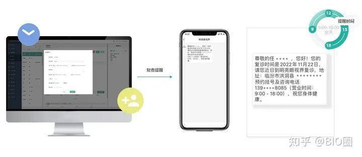 机构可自主设置随访患者、目标、周期、时间等参数,平台自动完成随访,患者通过手机短信、APP将会接到通知:
