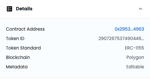 to nerd:注意这个符合ERC-1155标准,在Polygon区块链上,注意TokenID非常大,可见Opensea雄心有多大。