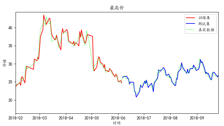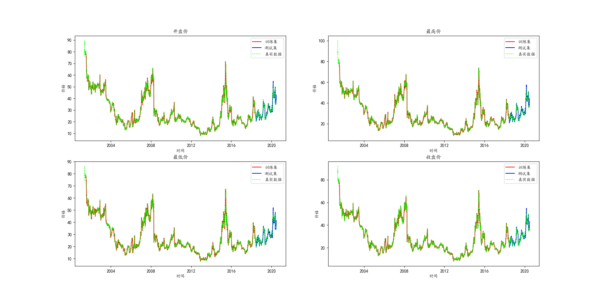 可以看到不管是训练集还是测试集都拟合完美,具体效果如何等待验证,个人感觉中长线趋势还是挺准的,短线偶尔也有一定的误差。