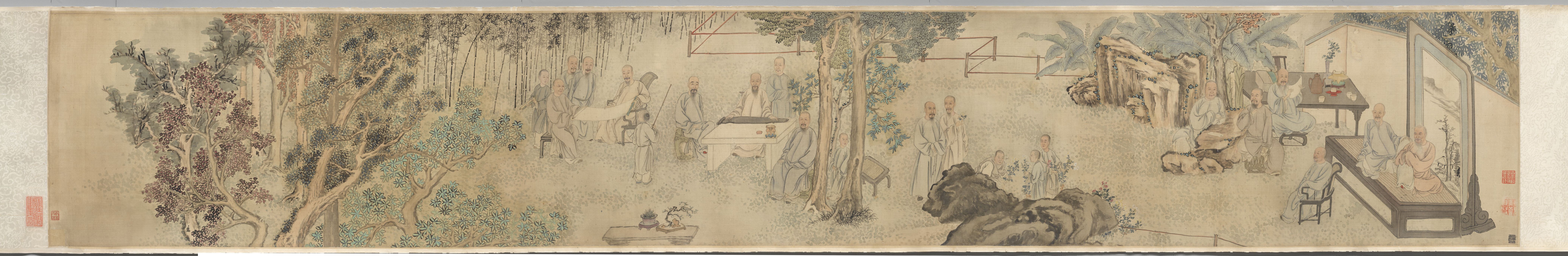 清 叶芳林《九日行庵文宴图》,绢本设色,纵31.7厘米,横201厘米。美国克利夫兰美术馆藏。