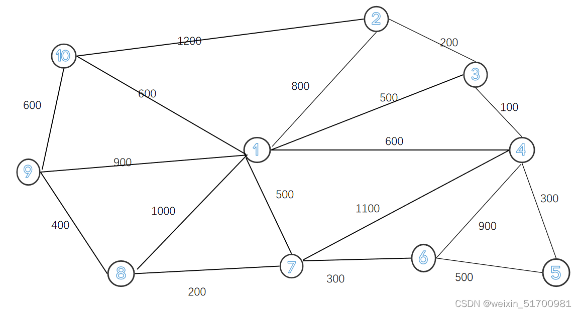 (1)设计你所在学校的校园平面图,所含景点不少于10个.以图中顶点表示校内各景点,存放景点名称、代号、简介 等信息;以边表示路径,存放路径长度等相关信息。