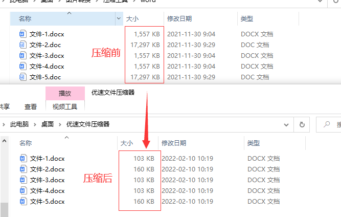 通过对比我们可以看到,压缩后的word文件要比压缩前小很多。