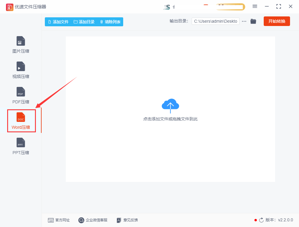 第2,进而点击【添加文件】按钮,选择要压缩的word文件,并全部上传到软件中,上传成功后,我们可以在软件看到文件列表。