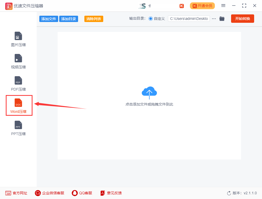 步骤2、然后我们找到【添加文件】按钮,把要压缩的word文档导入软件中,也可以用鼠标直接拖拽到软件的空白处,需要注意的是,软件可以进行批量压缩操作,一键解决所有word文档太大问题;