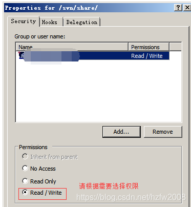 - 权限配置:选择需要开放权限的目录右键点击Properties,弹出窗口选择Add将需要开放授权的域账号加入,此处需要有域的管理权限方可将域账号添加进来;