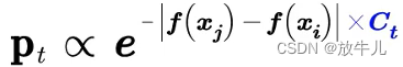 ,新旧函数值相差越小,则概率越大。搜索前期搜索范围应该尽可能大,搜索后期倾向于局部搜索。概率可以定义为: