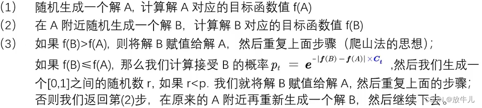 下标t看成迭代的次数,为了保证搜索过程的彻底,在同一温度下(t),需要进行多次搜索。所以两层循环。当达到指定迭代次数、达到指定温度、找到的最优解连续M次不变化就可以退出循环过程。