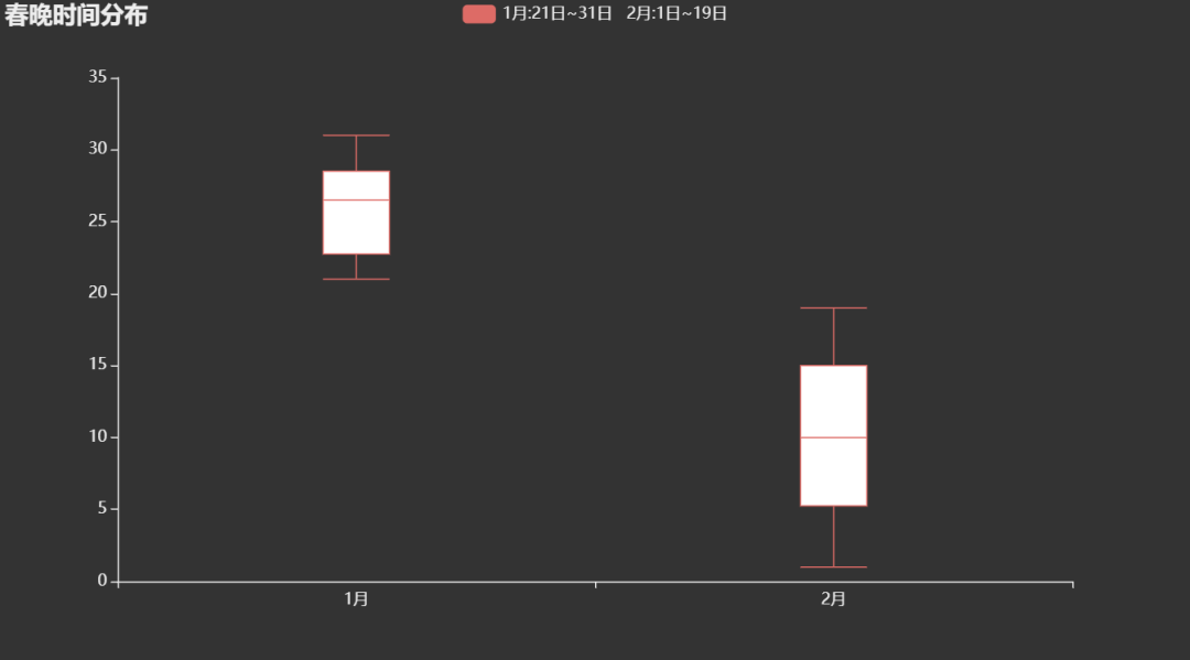 每年春晚时间都是在 1-2 月份,那主要分布在哪些日子呢,绘制箱型图查看一下: