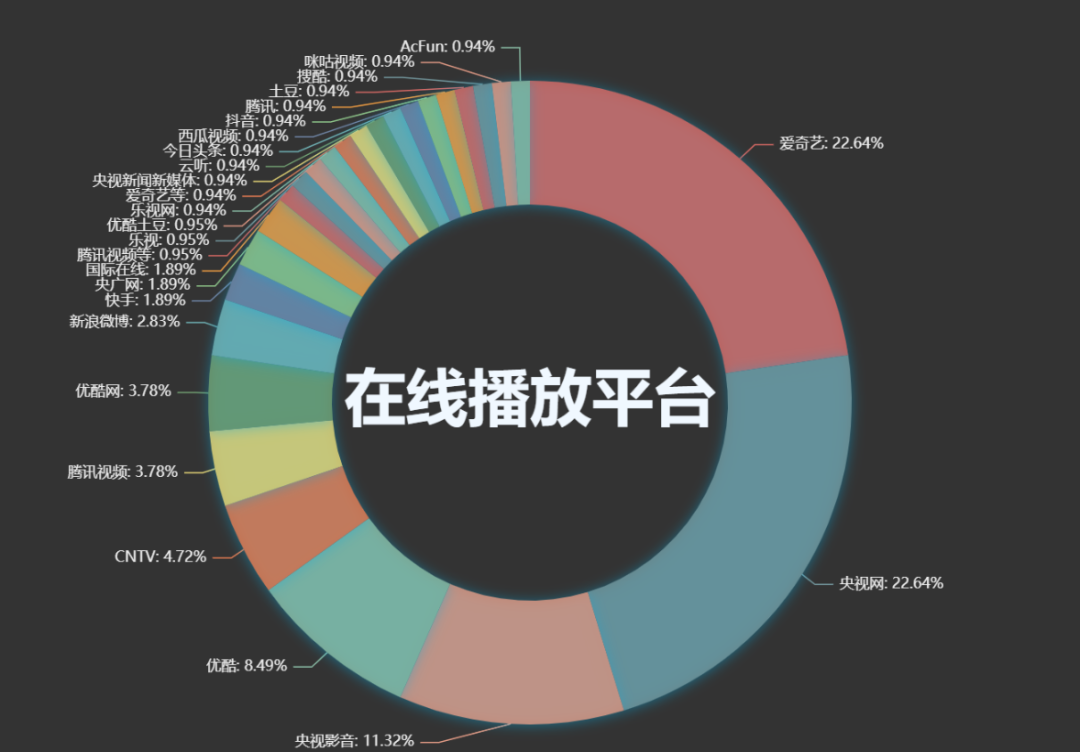 除开央视,就是爱奇艺播放次数最多了,从侧面可以反映出爱奇艺成立时间比较早。