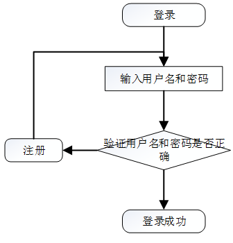 系统登录:运行系统,首先进入登录界面,按照登录界面的要求填写相应的“账号”和“密码”以及用户类型,点击“登录”然后系统判断填写是否正确,若正确进入相应的界面,否则给出要求先注册信息。具体流程如图5-1所示。