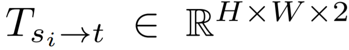 最后,通过变换流将每个源图像的可见纹理扭曲(warp)到所需条件,从而得到合成图像 I_t^syn。