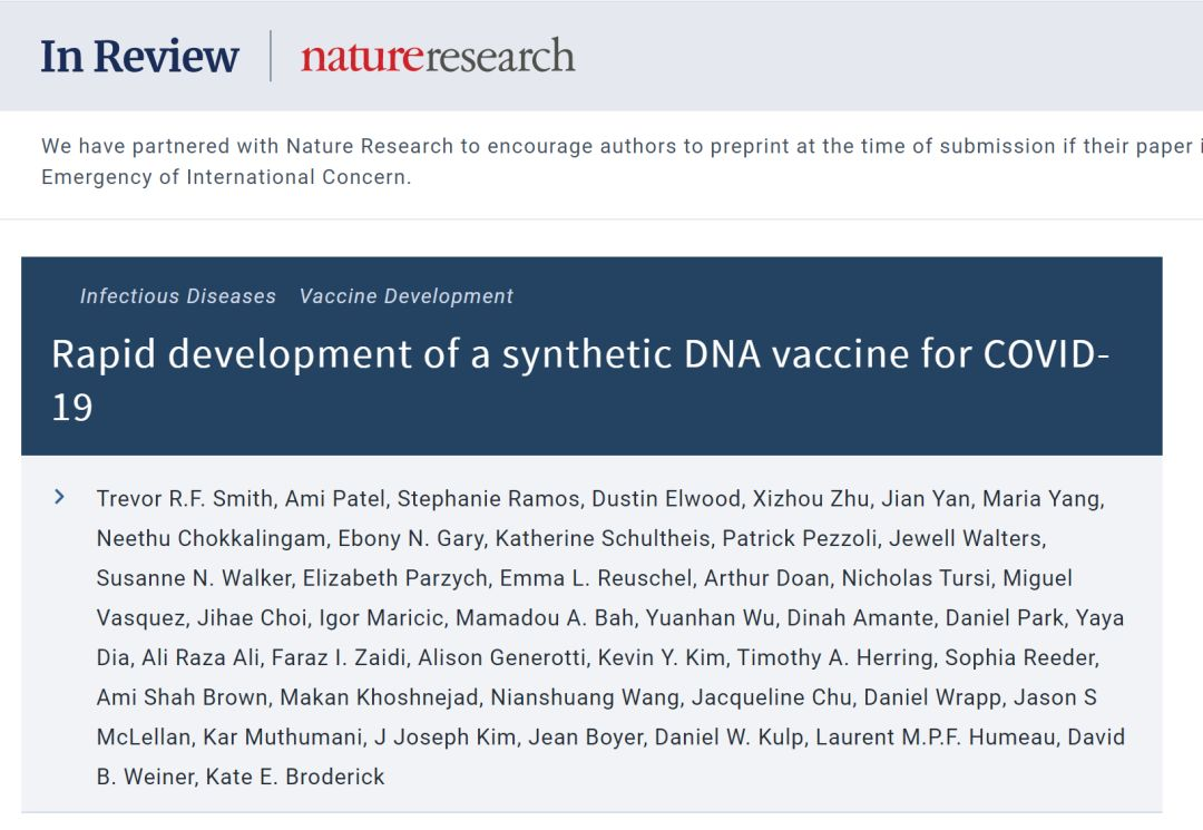 在3月2日的预印本,研究人员称,将Inovio疫苗(一种能够制造刺突蛋白指令的DNA)注射到小鼠和豚鼠中后,接受注射的动物体内产生了病毒抗体和T细胞。研究负责人、Inovio临床前研究与开发高级副总裁Kate Broderick说,研究小组现已将疫苗接种给猴子,即将开始研究接种疫苗的动物是否感染了病毒。