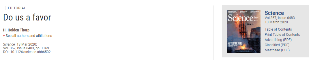 最后,Holden Thorp表示,从某种程度上讲,这是一场长期的斗争,是对彼此责任和同情力量的考验。Science会持续进行报道,尽快提供有关COVID-19的研究资料,Science也将继续为致力于这项研究的科学家们提供支持。