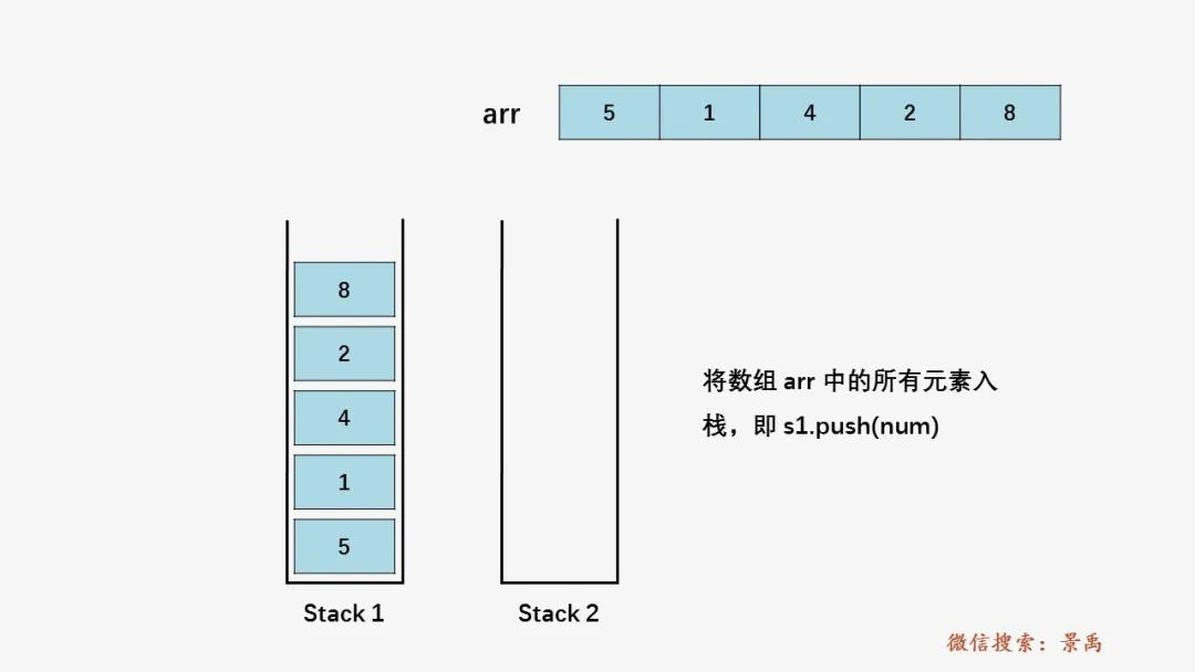 第一步:将数组 arr 中的所有元素都压入栈 s1 当中: