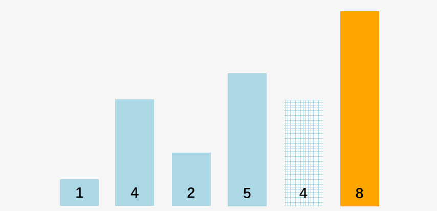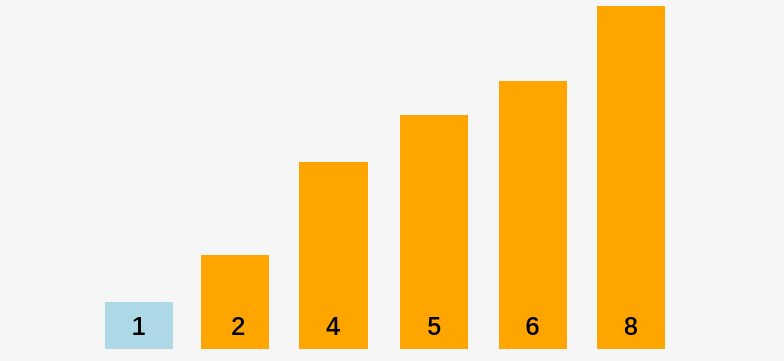 此刻我们获得数组当中最大的元素 8 ,使用橘黄色进行标记: