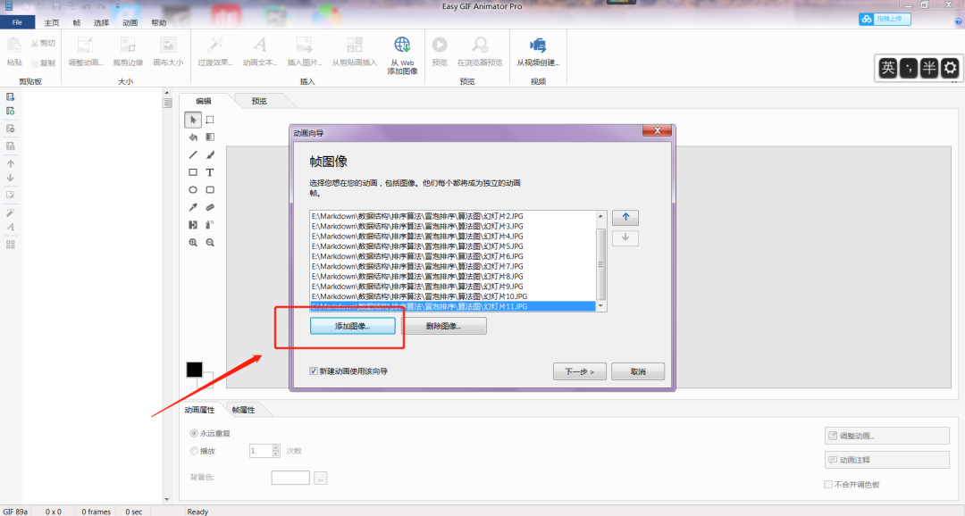然后点击 添加图像 ,将 PPT 中保存的 11 张图片添加进来: