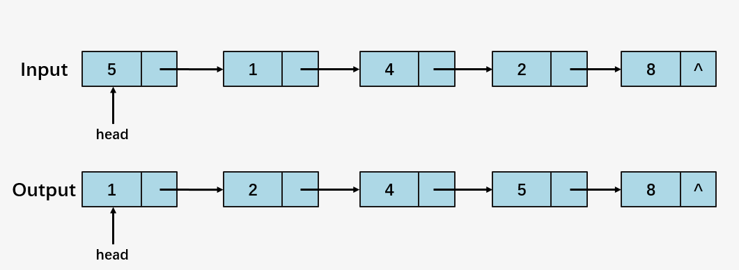最自然的实现方式就是比较相邻的两个结点,如果前面结点的值大于 next 结点的值,则交换两个结点的值,具体如下。