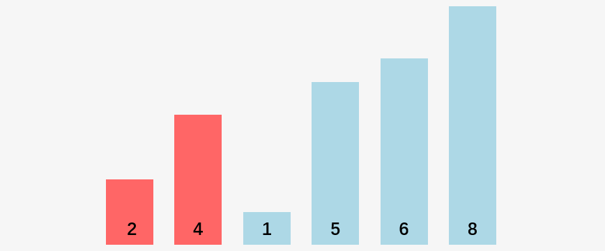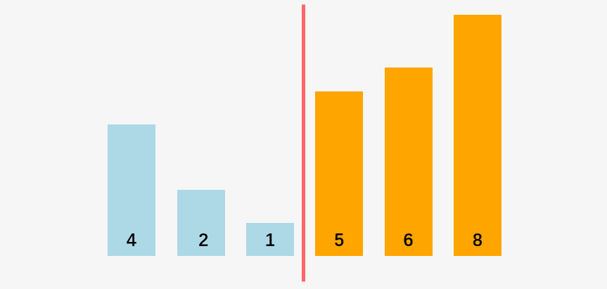 但是我们注意到,数组数组中的 [5,6,8] 本身已经有序,而对于有序的部分进行比较是没有意义的,相当于在白白浪费资源,有没有什么办法减少这样的比较次数呢?