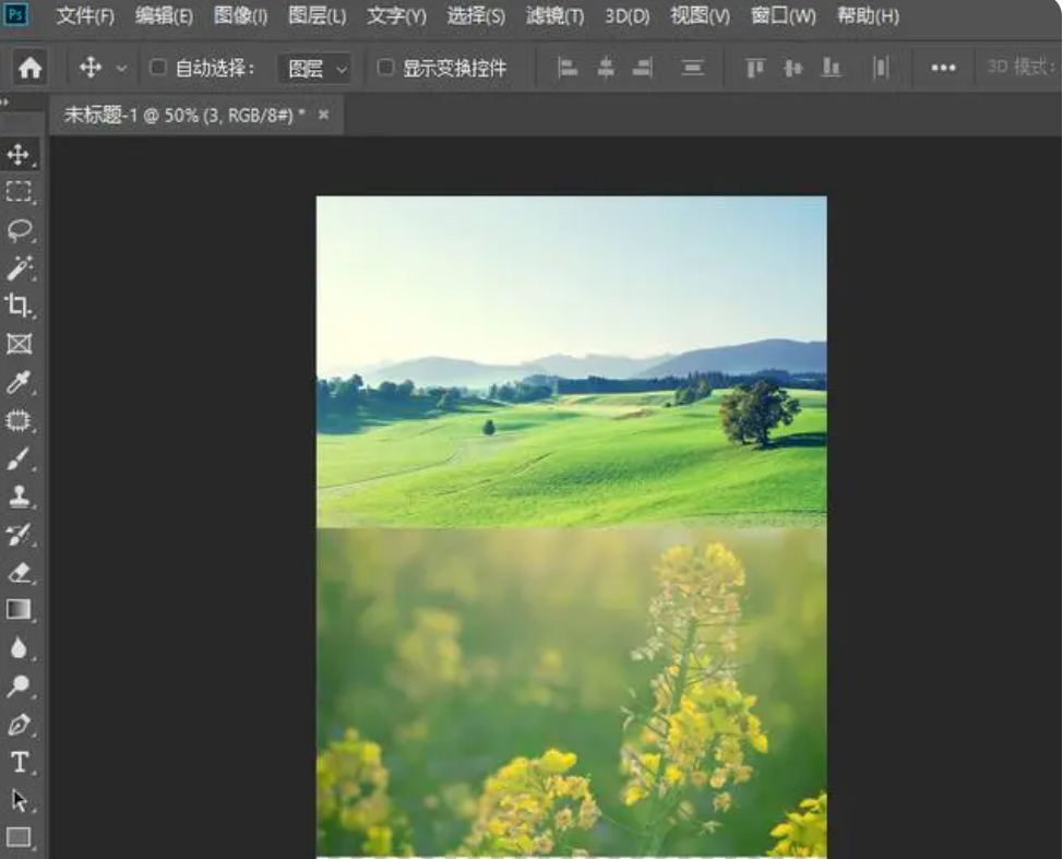 步骤2、将两张需要转成pdf的两种图片添加到这个图层上,调整成上下或者左右的连接方式;