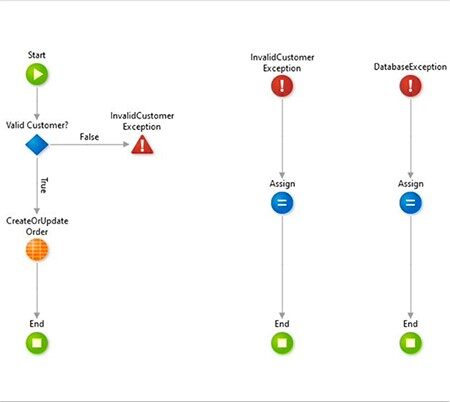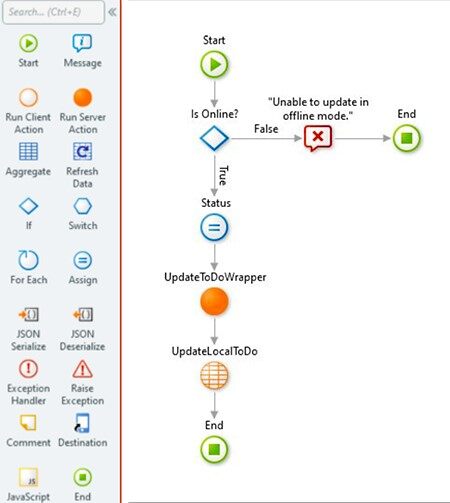 可视化开发不是拖拉拽做个界面(这只能叫可视化设计),而是要拖拉拽写处理逻辑。看 OutSystems 这类产品的文档,你会发现很多编程语言的基本构造都有,比如顺序 / 分支 / 循环 / continue / break、输入输出参数、局部变量 / 全局变量、struct 和 list、异常等。虽然这些东西都是拖拉拽完成,看上去没有密密麻麻的一行行代码来吓人,但也足以吓退业务人员。一下几张图都来自于 OutSystems,大家可以感受一下。