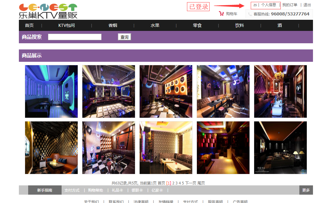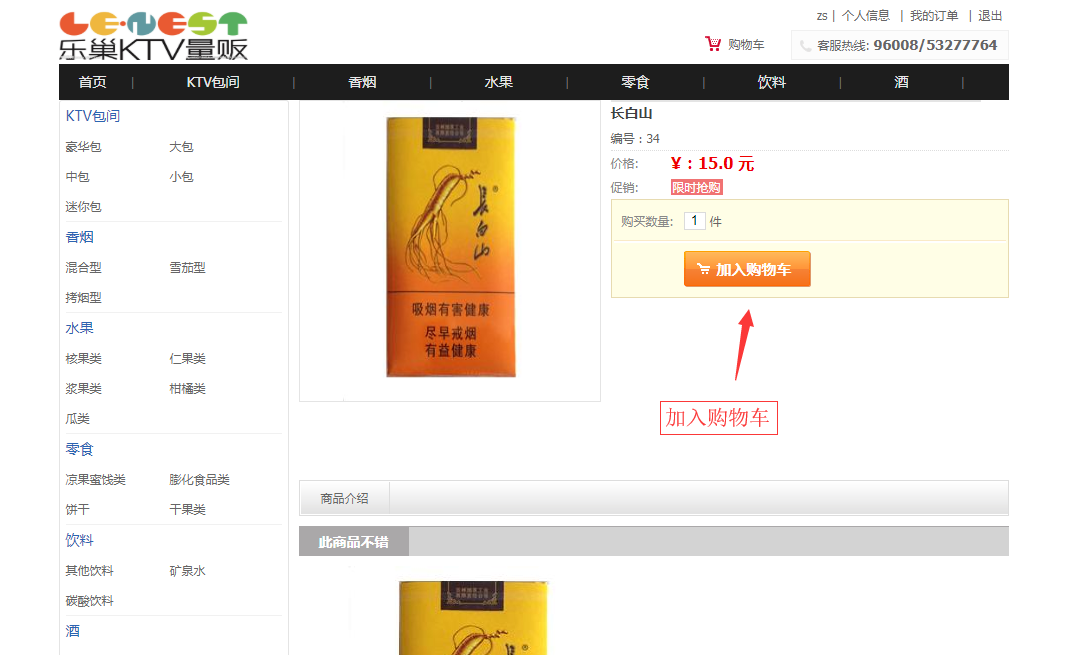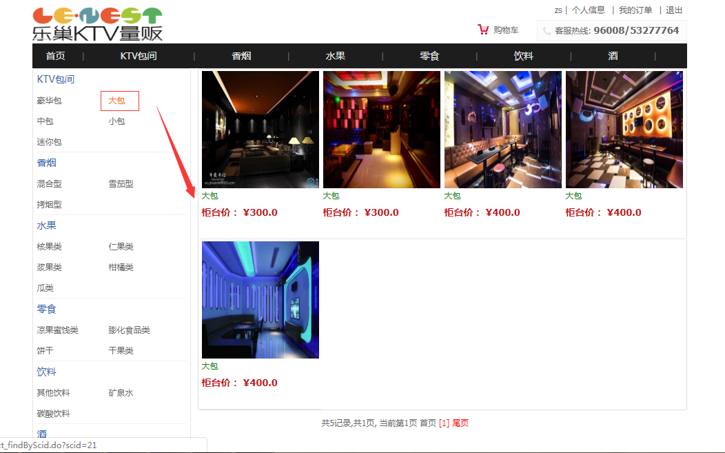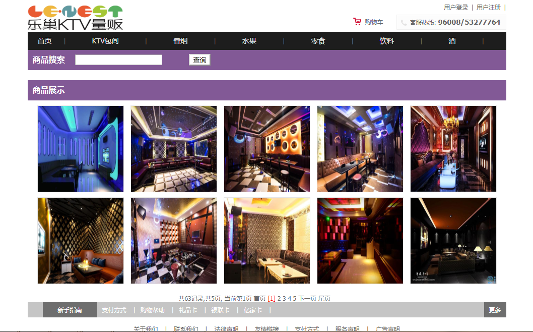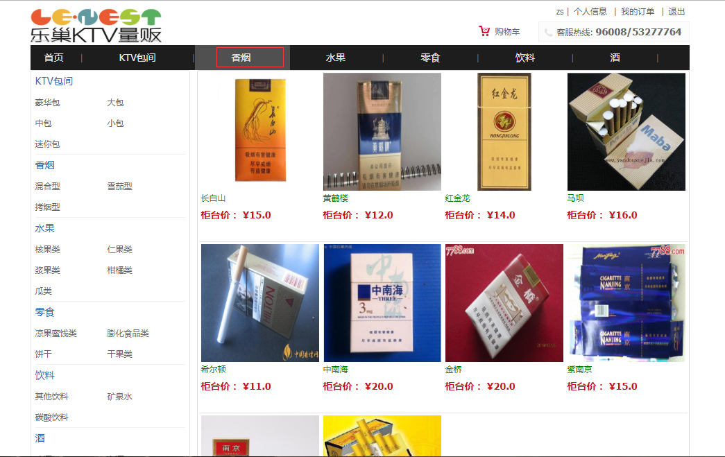 用户:可以注册、登录ktv消费系统;可以查看全部ktv包间,查看全部消费商品(香烟、水果、零食、饮料、酒),可以按分类和名称搜索包间和商品,可以查看包间和商品的详情;可以将ktv包间和商品加入购物车、可以下单付款;可以查看我的购物车,我的订单和个人信息。