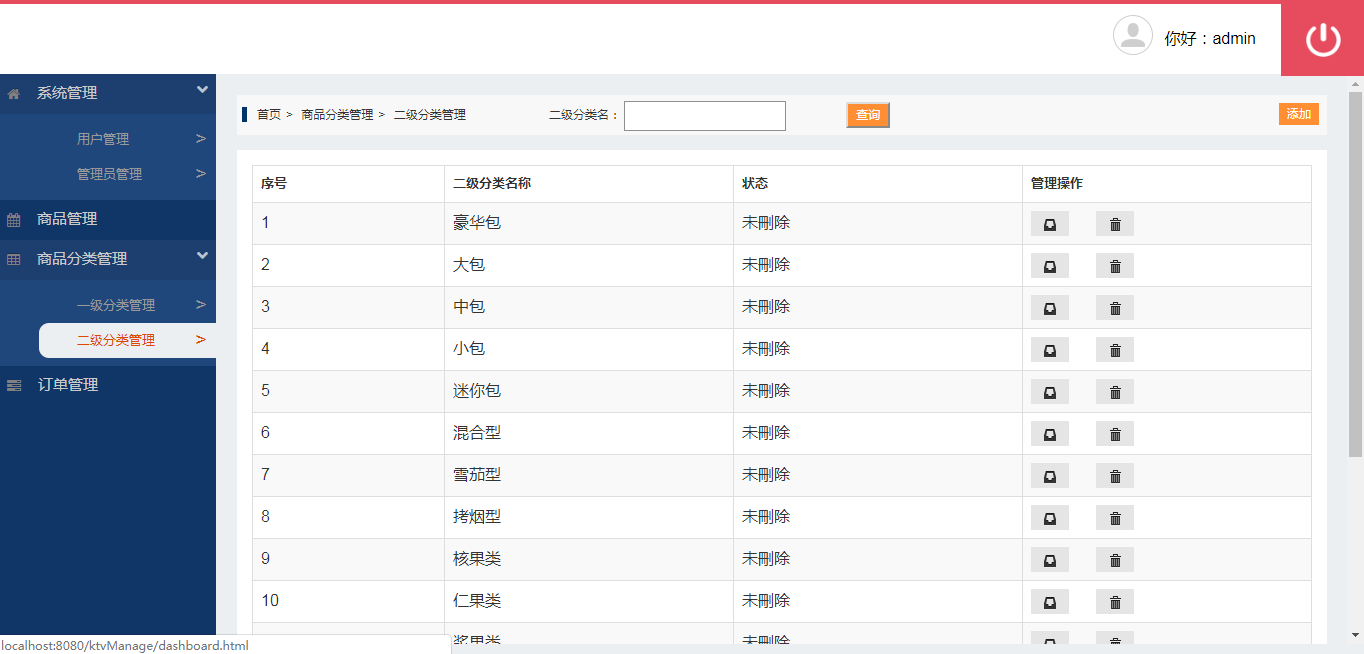 管理员:可以进行用户管理、管理员管理、商品管理、商品分类管理(一级分类、二级分类)、订单管理。