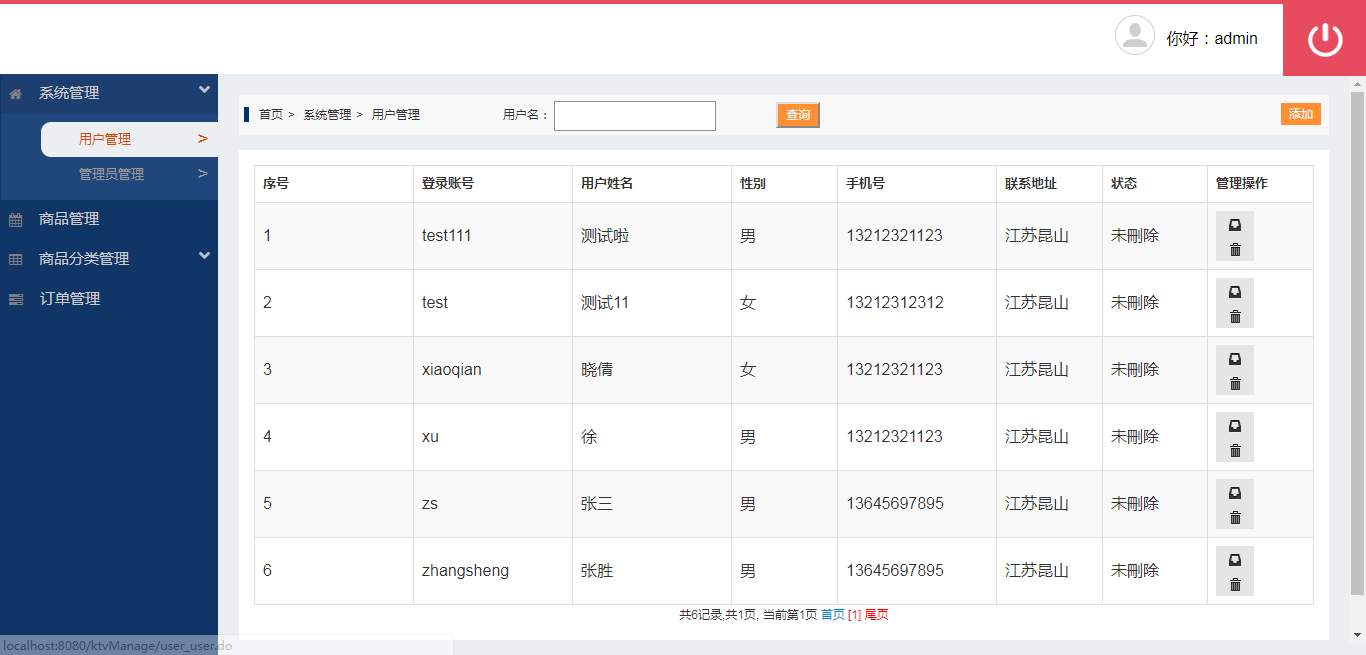 本系统是基于jsp+mysql的ktv消费管理网站,本系统分为用户和管理员权限,功能如下: