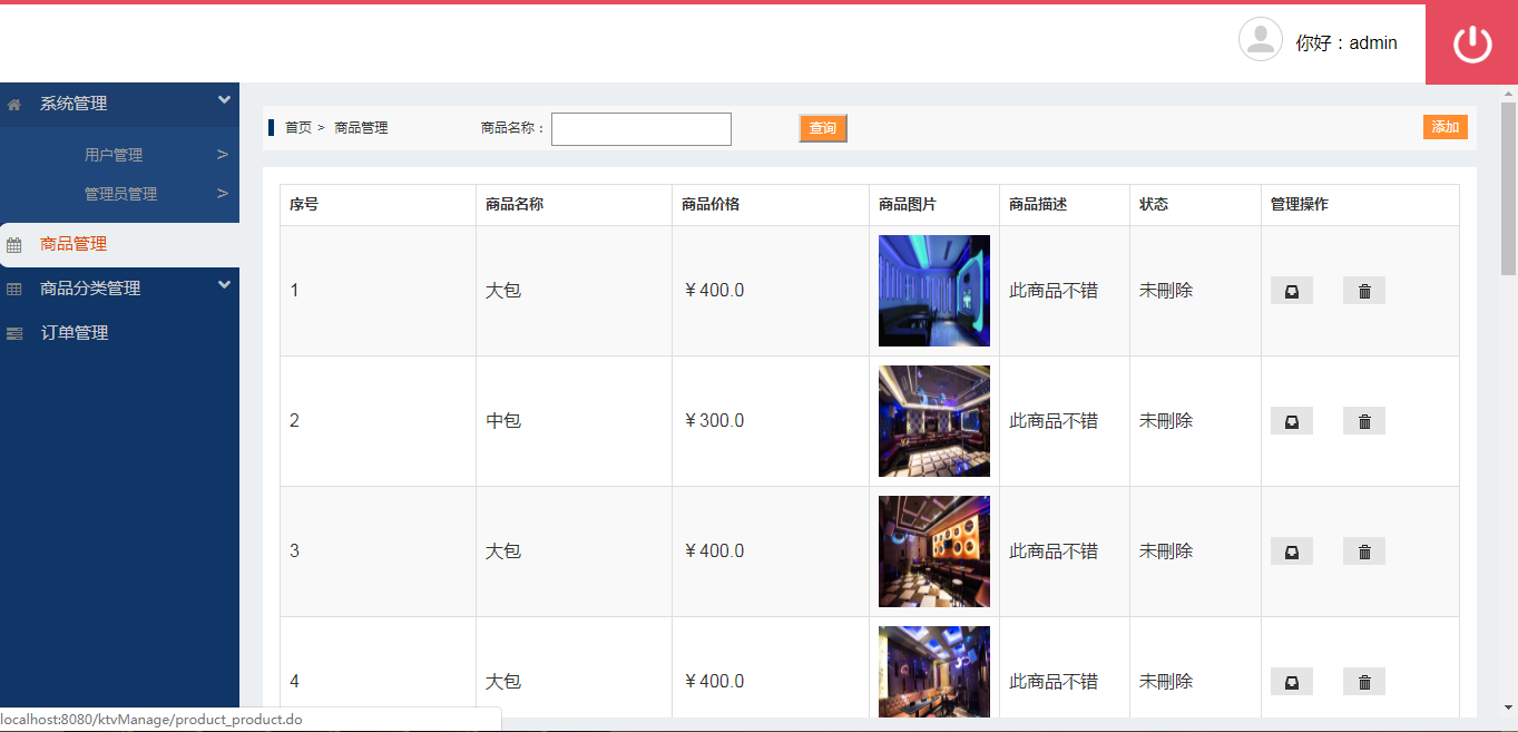 java+ssh+mysql的ktv消费管理系统