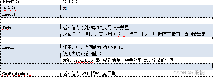 量化投资股票API调用结果说明(部分)