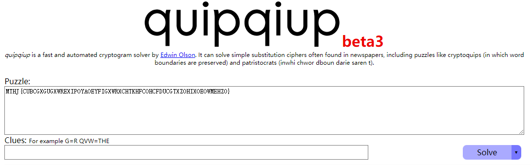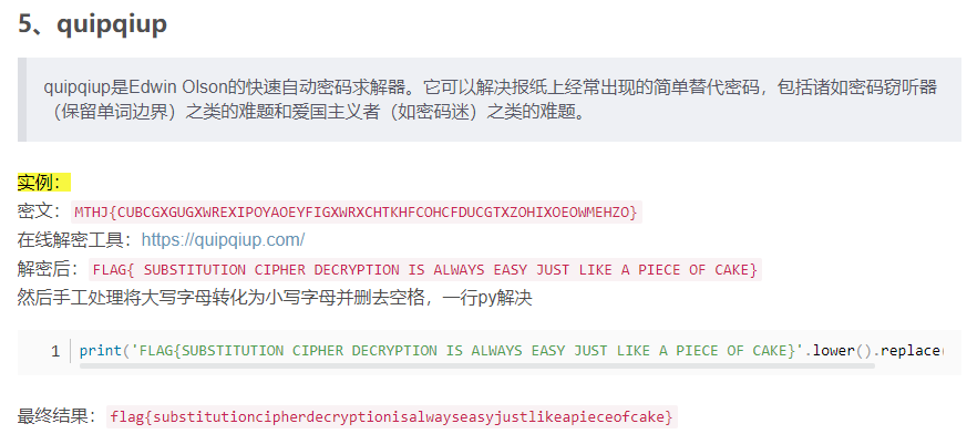 STEP2:根据题意,需要“将这段语句还原成通顺语句”,结合万能的quipqiup,得到