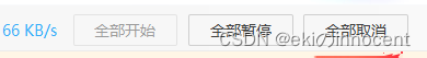 二、在退出百度云盘前全部暂停正在进行传输的文件,等再次打开时点击开始即可