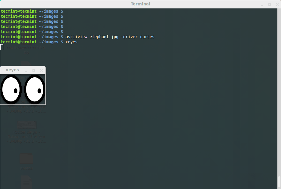 xeyes命令是一个图形显示程序。运行这个程序,你会看到一双萌萌的眼睛会一直盯着你。