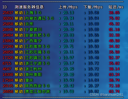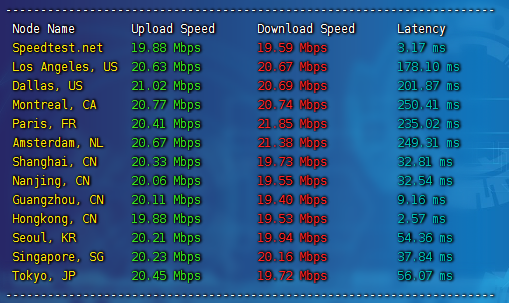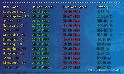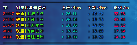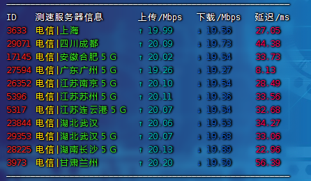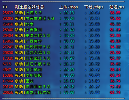 国内三网测速,上传和下载都达到了这个20mbps的峰值