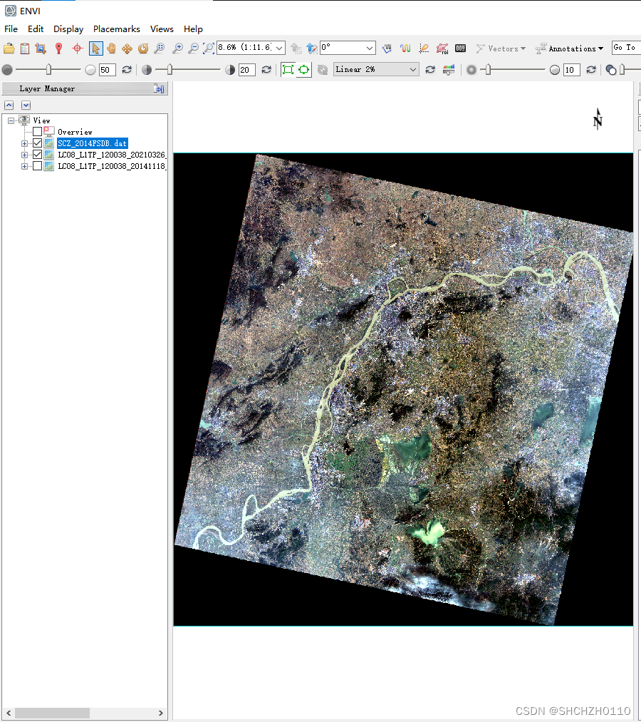 将其加载到ENVI中可以更细致的查看下载的影像,确定影像合格,开始对遥感影像进行处理。