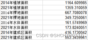 根据融合的结果在属性表中添加字段,进行计算几何的操作,计算出各类地物的面积。将计算后的属性表转换为excel表格,在excel表格中对两年的同一地物类型进行图表对比。