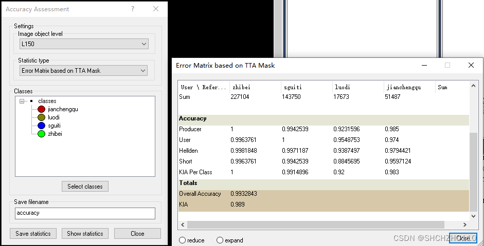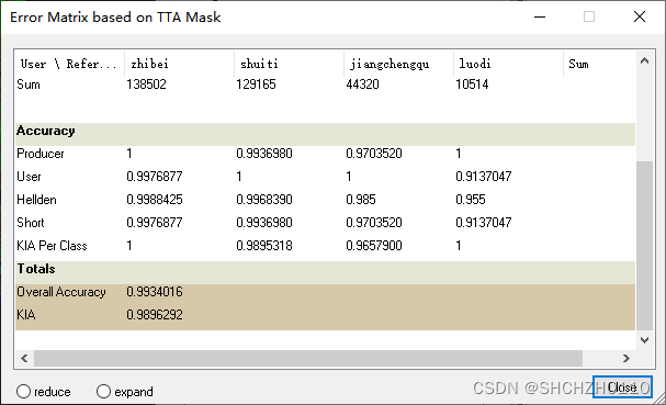 点击 tool –>Accuracy Assessment,打开精度评价工具,设置参数,得到精度报告。
