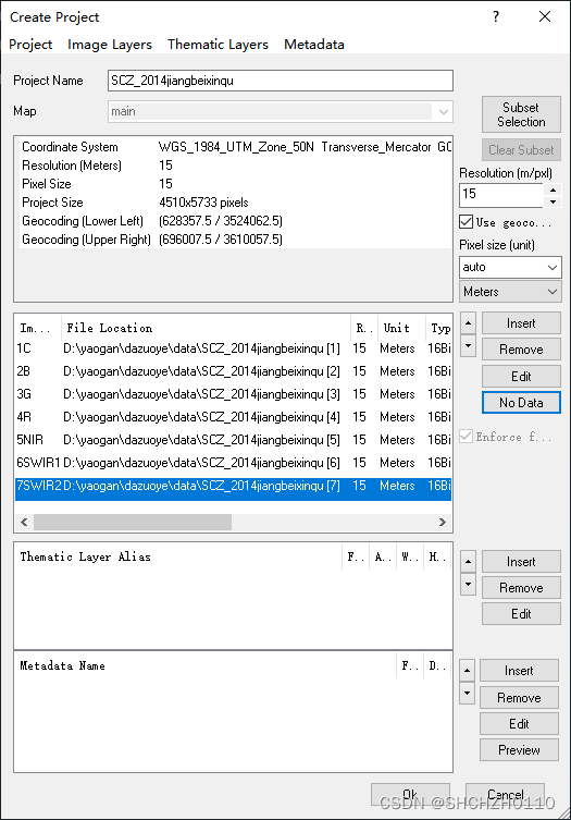 使用eCognition 软件中的面向对象分类;添加影像,对波段进行重新命名,方便观看。