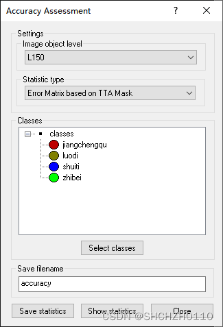 点击 tool –>Accuracy Assessment,打开精度评价工具,设置参数如下所示: