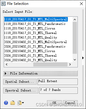 进行辐射定标,使用工具栏“辐射定标”工具,先选择文件。选择影像的可见光-红外组。
