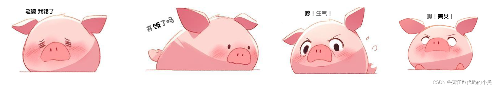 翻译:一只小猪(可替换主体),多种姿势和表情(重点)、生气、开心、撒娇,一套插画粗线条漫画风格,动态姿势,深白色,f/64组,Old MemeKernel,Chalk --ar 157:85