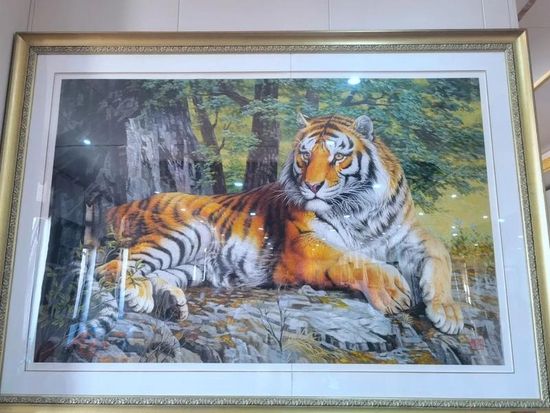 走进祖氏滇绣,映入眼帘的就是一幅惟妙惟肖的虎,无论走到哪里,虎的眼睛好像都在看着你。从虎的体态,到虎的毛色都在祖玉兰高超的刺绣手法下,呈现得栩栩如生。