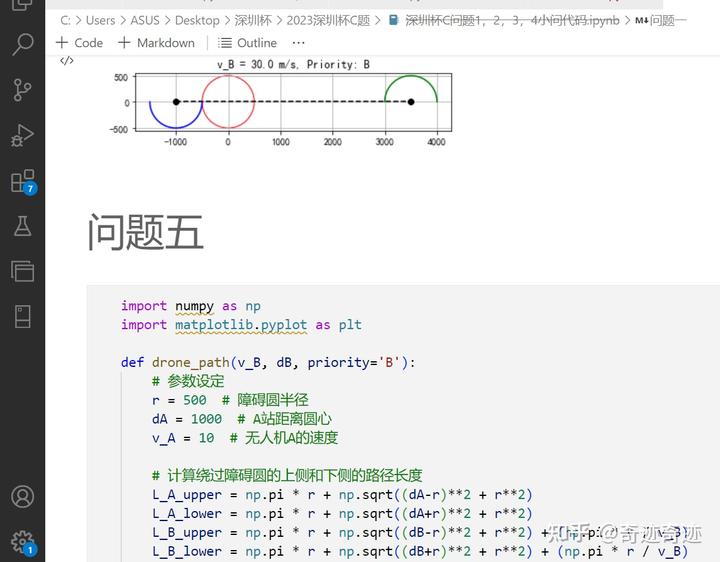 问题三关注的是地理位置因素对无人机飞行路径的影响。具体而言,当B站点到圆心的距离发生变化(同时其他参数保持不变)时,问题一和问题二中的最优飞行路径将如何改变。