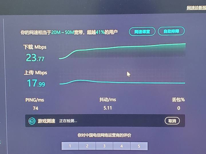 在家网速还不错,可能因为我家里WiFi大多数都是5g频段的原因,没有什么干扰。见最后一张图。