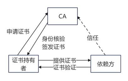 依赖方:PKI应用过程中使用其他人的证书实现安全功能的通信实体,也称为证书依赖方。