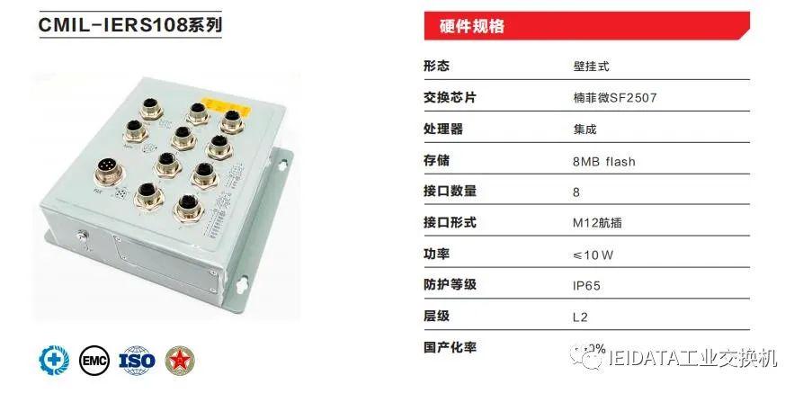 图4:海翎光电研制的全国产交换机IERS108(8口交换机)硬件规格
