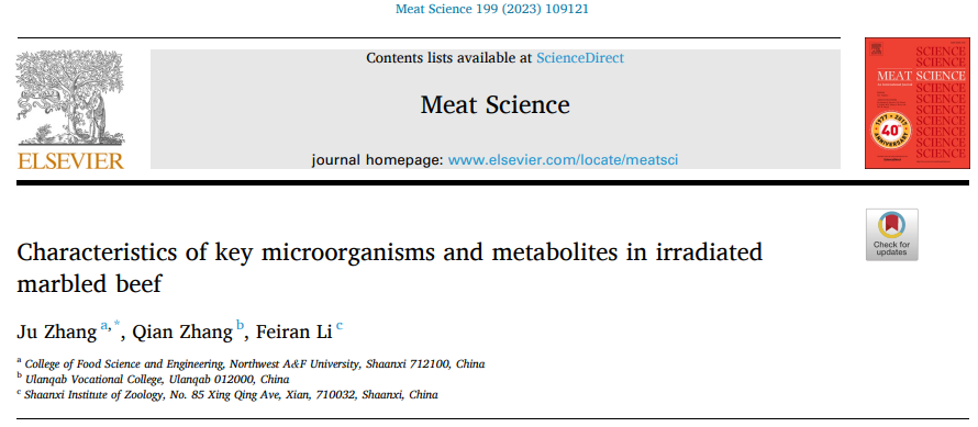 文章题目:辐照大理石牛肉中关键微生物和代谢物的特性研究