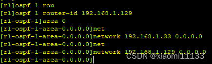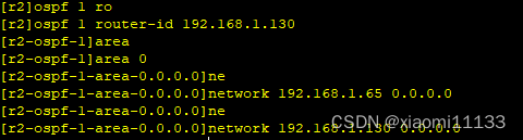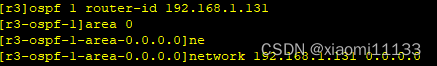 启动ospf协议,宣告r1-r3设为区域0、r3-r4为区域1。如下