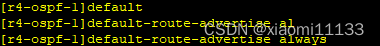 由于4.4.4.0/24网段不能直接宣告所以需要用到缺省路由需要在边界路由器配置。